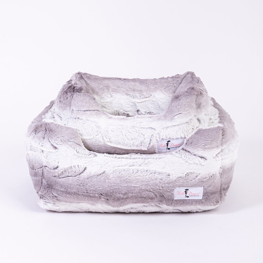Hello Doggie's Cashmere collection is crafted with ultra soft high quality fabric that will have your baby drifting off into sweet dreams. This plush dog bed is filled with 100% poly-fiber fill for that soft sinking feeling. Reversible for easy care. Wash on gentle cycle, tumble dry low.