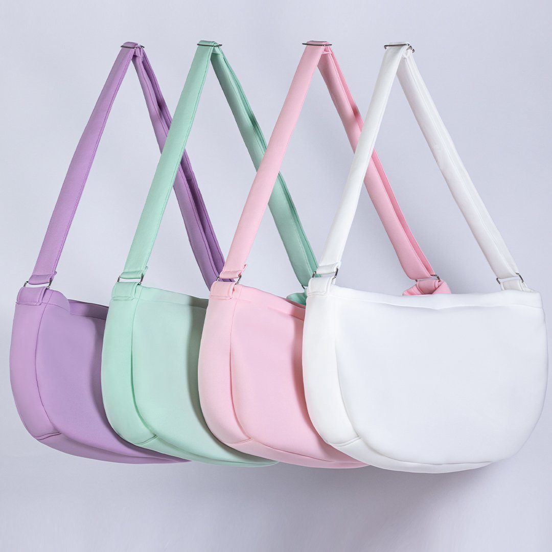 "The Signature Dog Sling is the latest and greatest way to keep your doggie comfortable anywhere you go, with twelve vibrant different colors to choose from; You'll be the talk of the town sporting one of these colorful pouches at your side. Its interior is lined with a soft faux cuddle mink fabric, with a satin pocket and a YKK zipper. Exterior material is made form neoprene fabric it's durable, machine washable and will keep your puppy warm by keeping out the chill. Gentle cycle to wash, no bleach or softener. Air dry or tumble low.  Sling features interior satin pocket, adjustable shoulder strap and interior safety tether. Available in 12 colors Measurements - 18"" L x 4"" W x 12"" H*Slings are handmade, sizes may vary slightly. Made in USA."