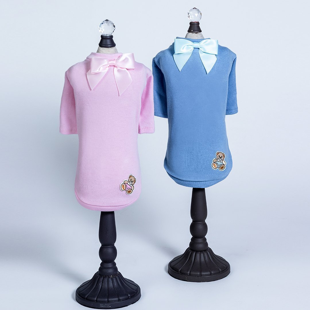 Dress your pup in this Baby Bear Tee handmade by Hello Doggie for the cutest look ever, perfect for your adorable little pup to go anywhere! Made with cotton jersey knit  soft fabric.Wash on gentle cycle in cold water, no bleach or softner and air dry or tumble on low. Sizes - XXS - LG  *Tee is handmade and sizes may vary slightly. Made in USA.